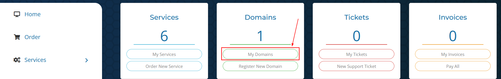 Select “My Domains” from the dashboard.