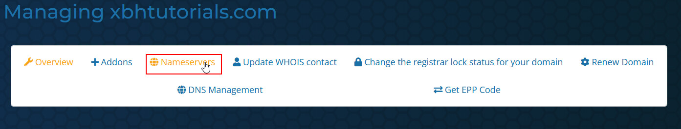 Select “Nameservers” from the top menu.
